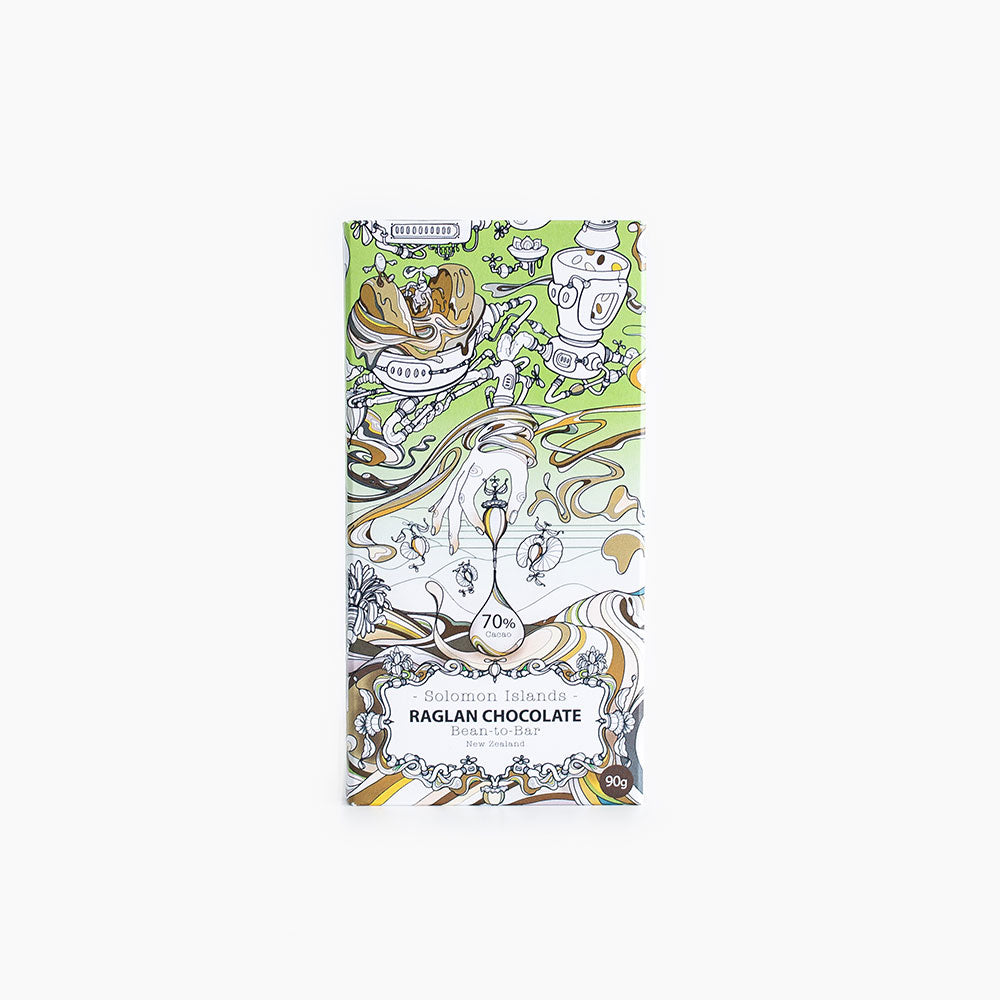 Raglan Chocolate use this excellent Pacific cocoa to craft a generously sized 90G bar with fruity notes of raisin/prune with a hint of caramel that smooths out this bar’s richness.
