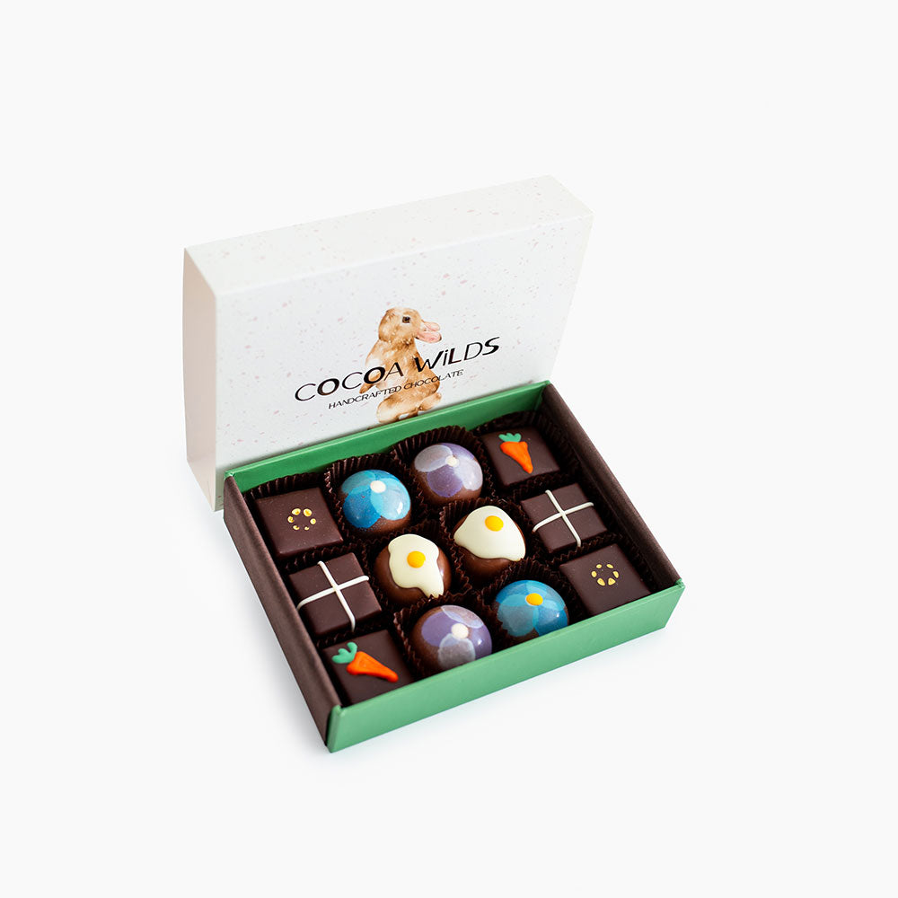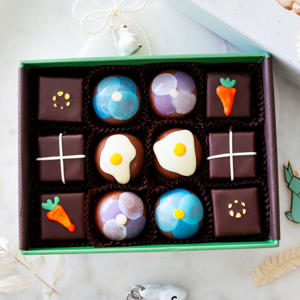 At Easter time we focus on a playful concept, where we imagine you sharing with family, younger ones and maybe scattering a few of these chocolates to be discovered with joy. These boxes were incredibly popular last year and we're so happy to make them for you again as you celebrate Easter and share something of true quality.