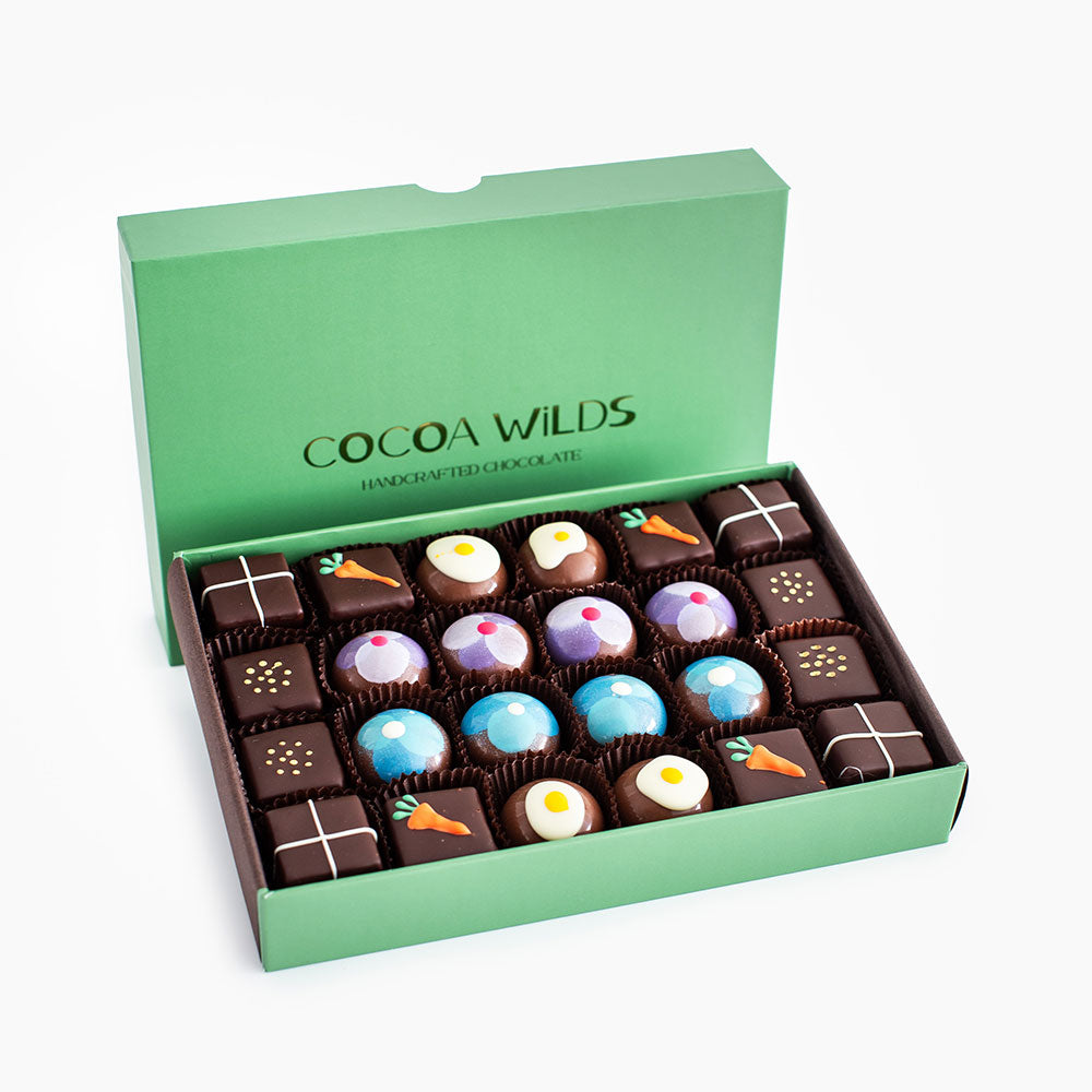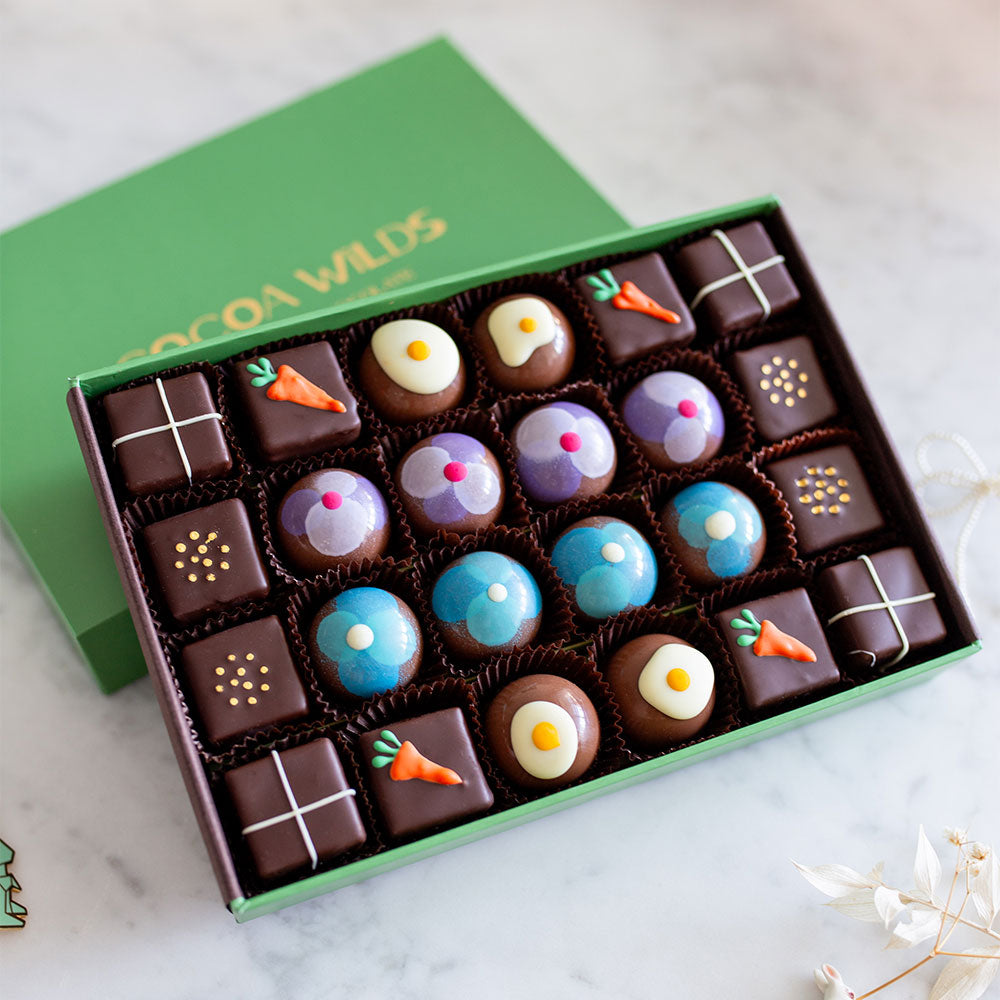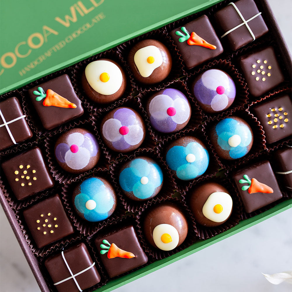 Our freshly made Easter chocolate box has hopped it's way into 12 and 24 piece assortments.