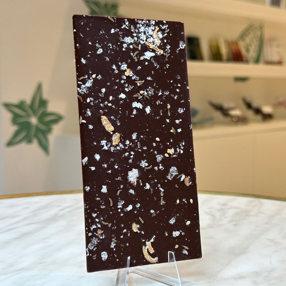 Our special blend of 43% dark milk chocolate sprinkled with Everything Seasoning... yes you'd usually find this on a bagel - but trust us with this one!