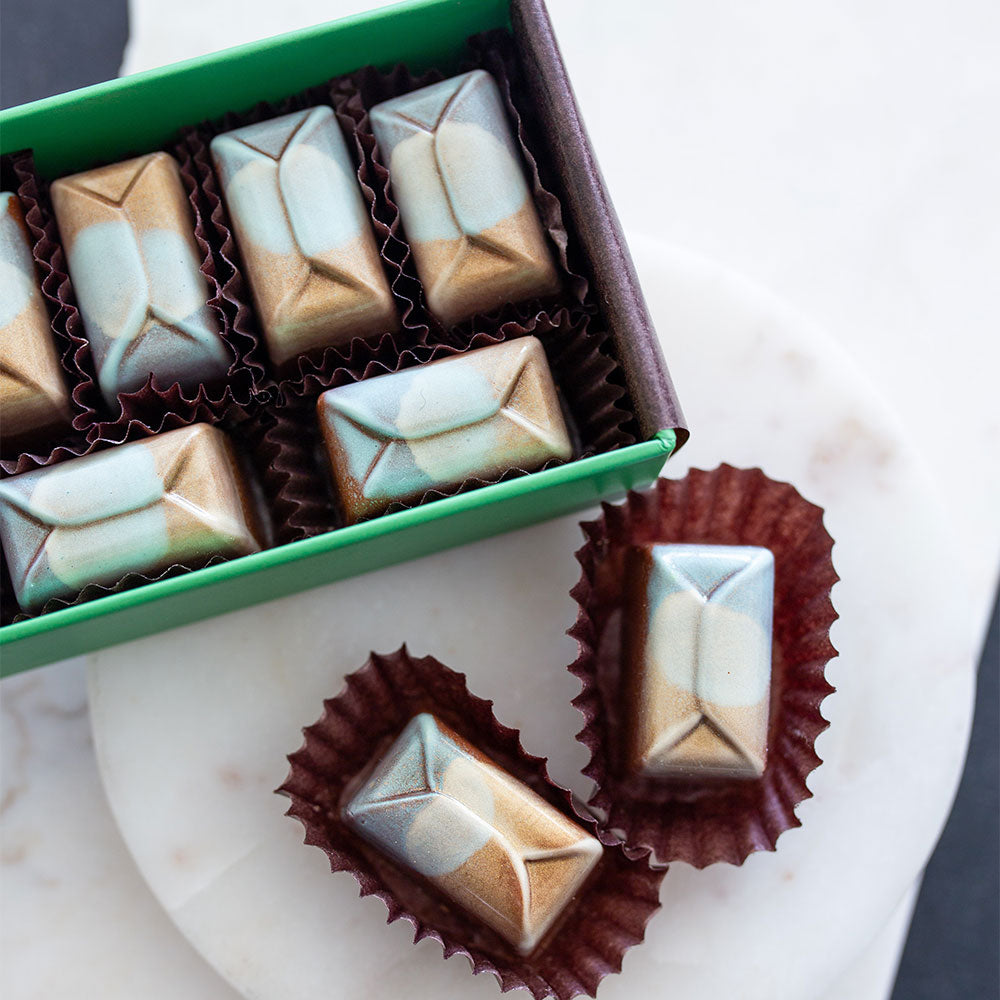Experience the global sensation with our Viral Dubai Pistachio Knafeh Chocolate Bars. Enjoy three indulgent milk chocolate snacking bars infused with crunchy, caramelized pistachio praline and kaitaifi pastry. Also available as six individual chocolate Bonbons.